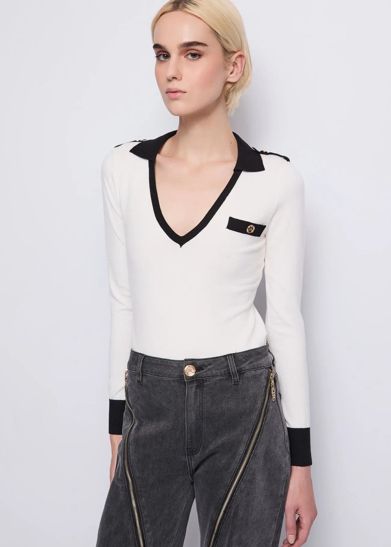 BODY IN MAGLIA BIANCO CON CONTRASTO NERO