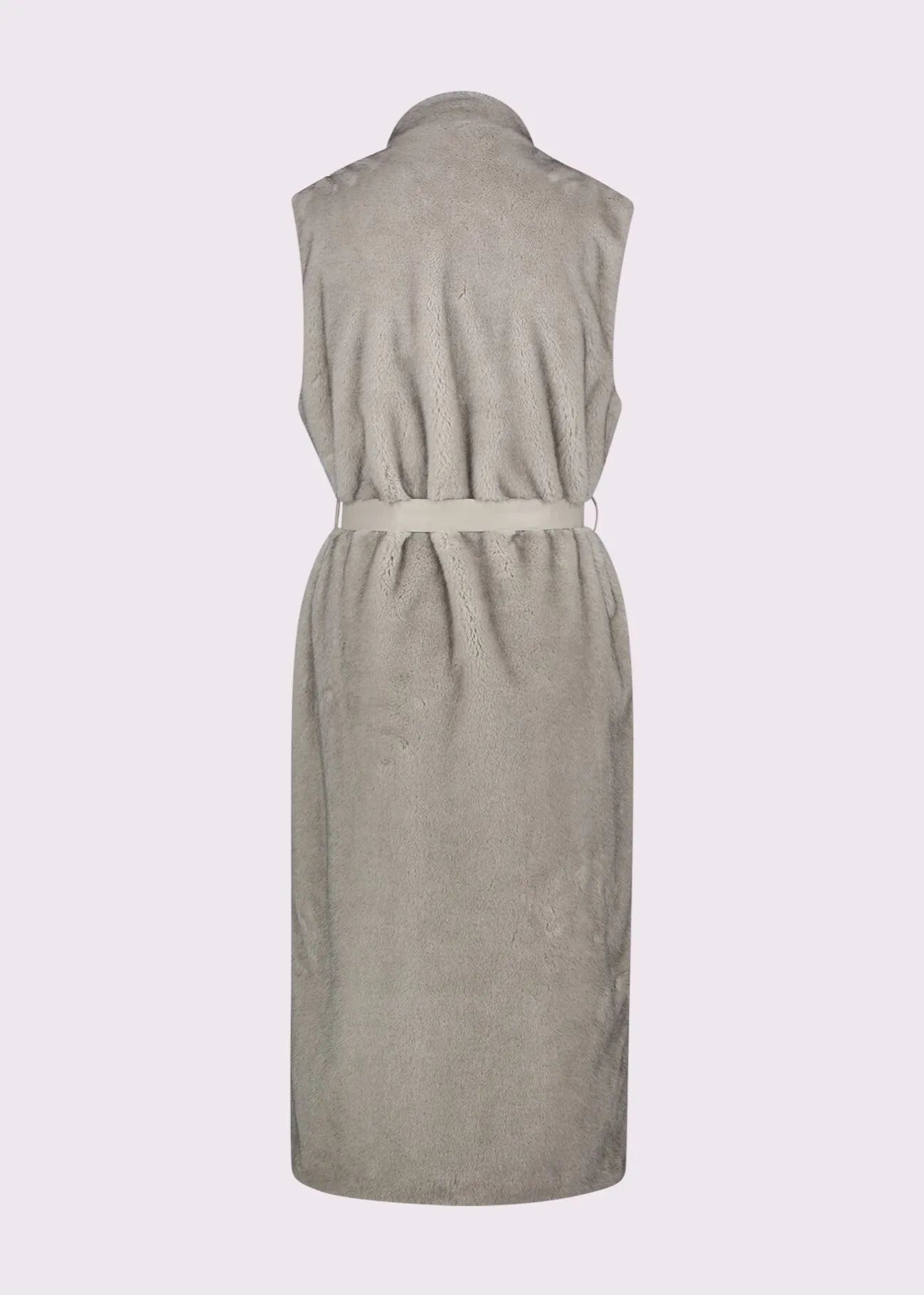 Scegli il gilet lungo in morbida pelliccia sintetica con cintura in similpelle. Per un look raffinato e confortevole dal tocco contemporaneo.
