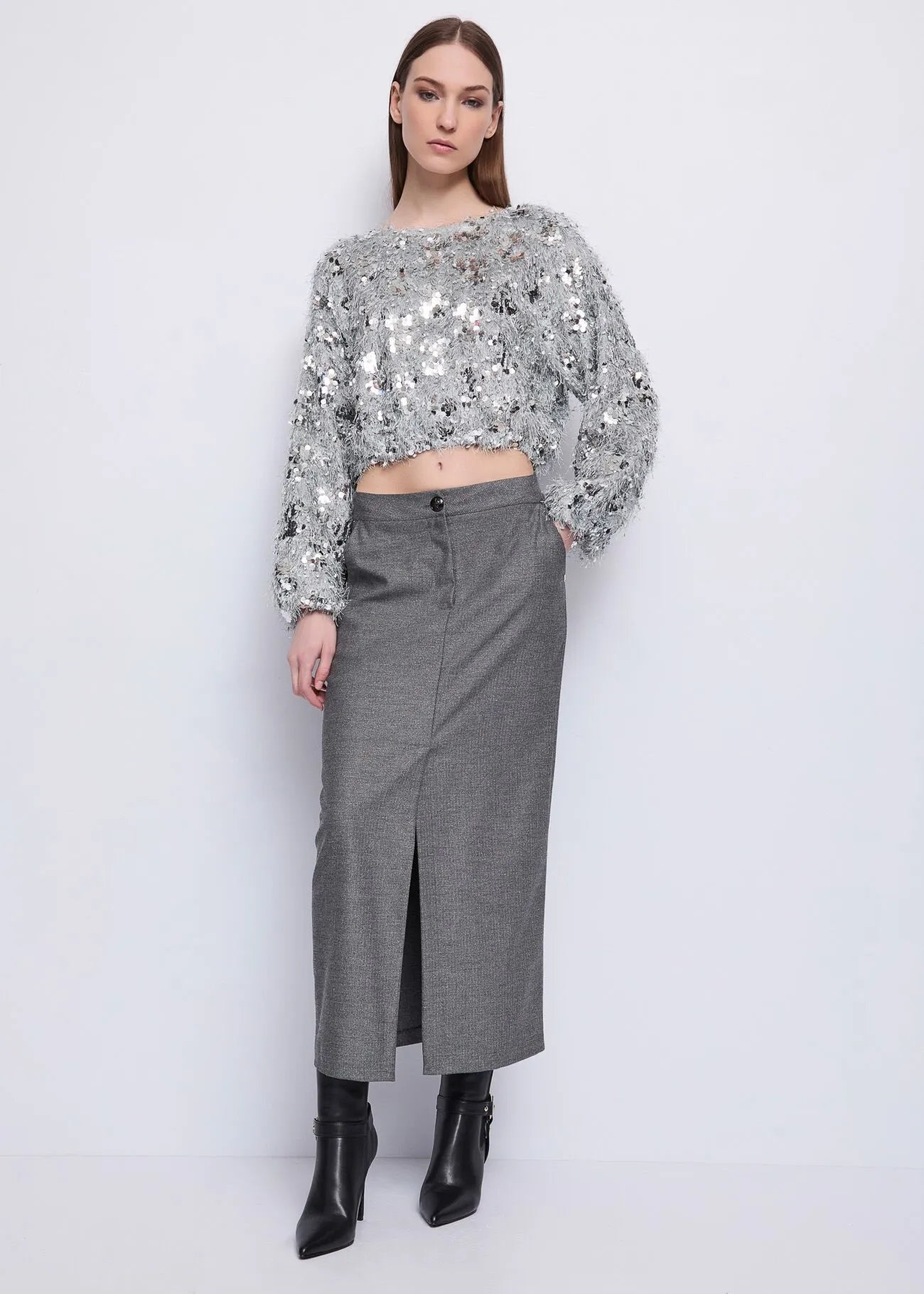 Blusa da donna con frange e paillettes  Scegli la blusa in tessuto sfrangiato con paillettes e scollo a barca. Cropped fit per un look scintillante...