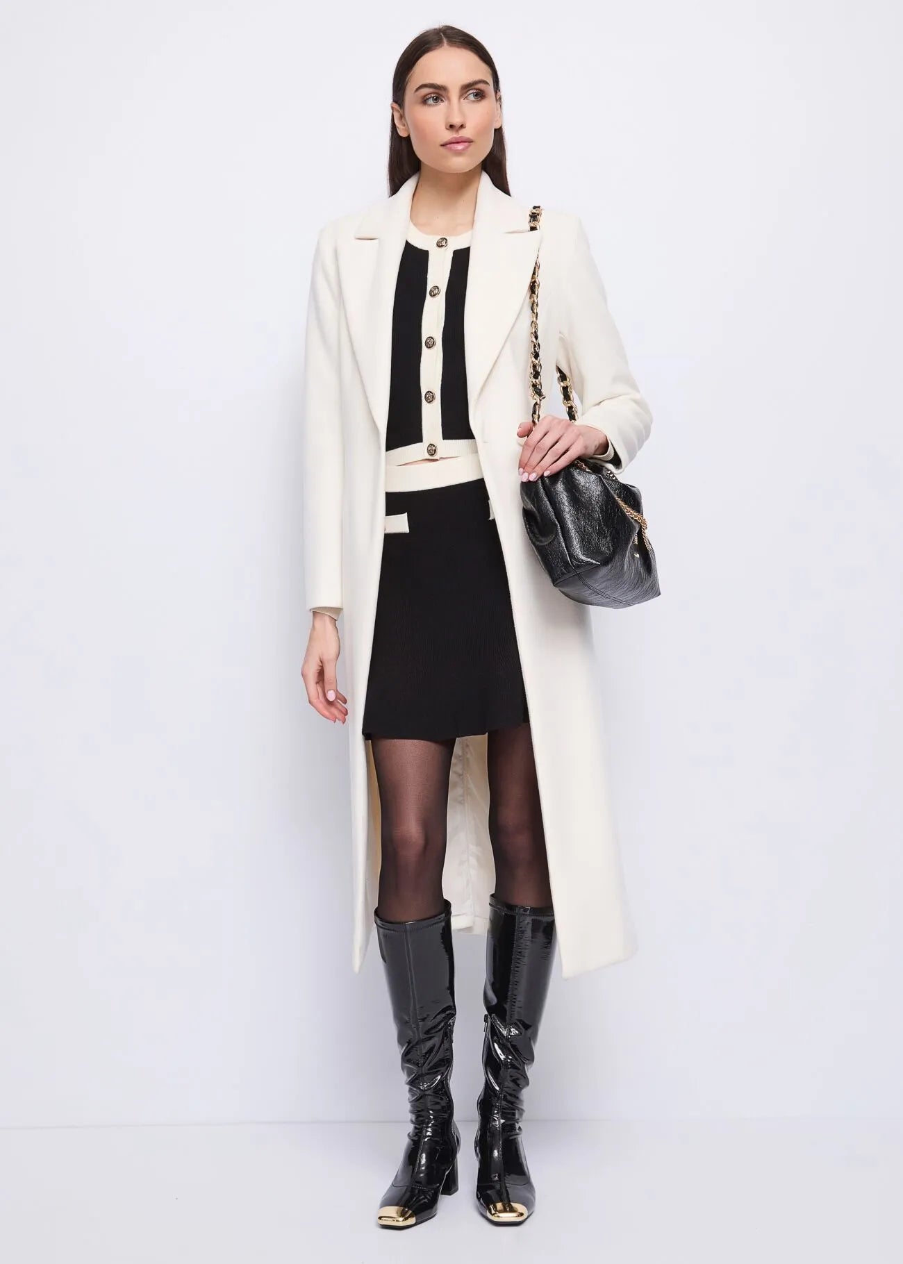 Scegli il cardigan in maglia di misto viscosa a costine con bordi a contrasto e bottoni gioiello. Cropped fit per un’eleganza moderna e sofisticata. Crea un ensemble chic e femminile abbinandolo alla minigonna coordinata e all'eleganza sartoriale del cappotto lungo. Completa lo styling aggiungendo la borsa a spalla con catene e gli stivali glossy impreziositi da punta laminata.