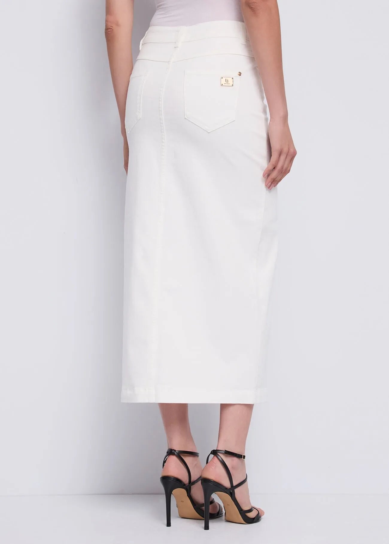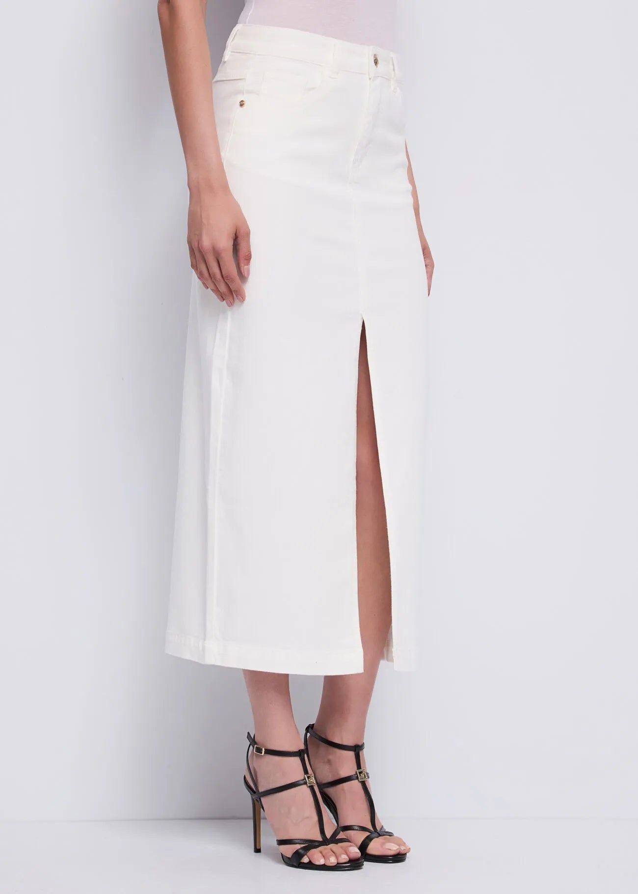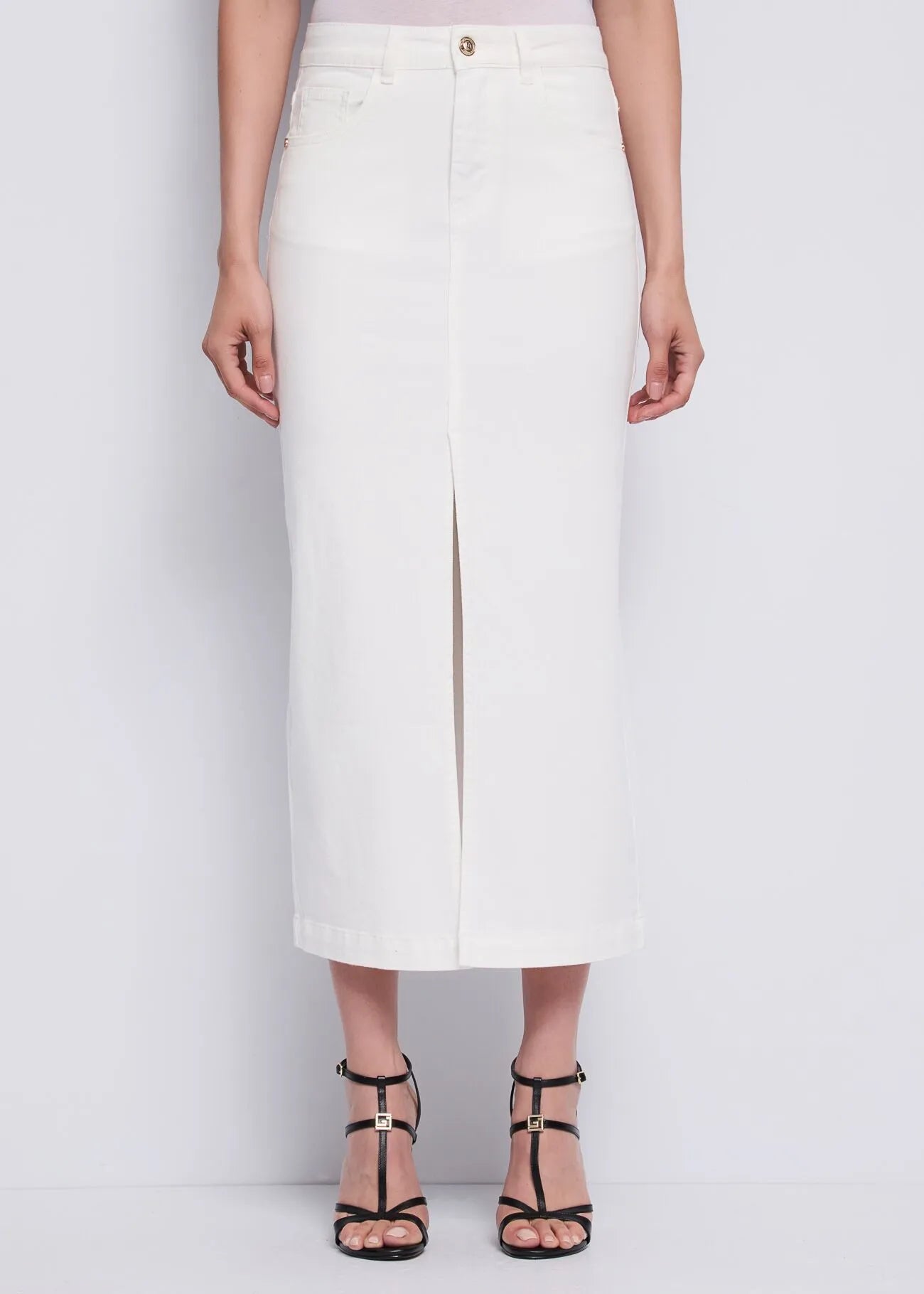 Gonna in twill con spacco Scegli la gonna lunga in twill di cotone elasticizzato con spacco sul davanti. Modello cinque tasche per un look seducente...